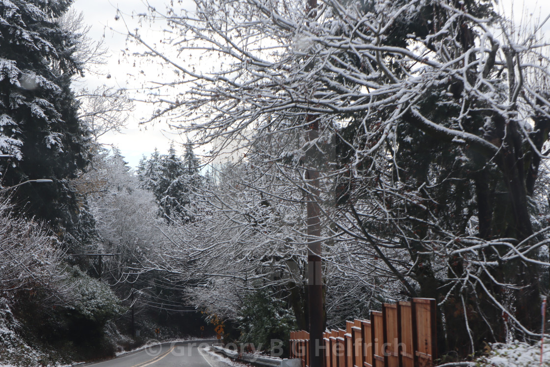 While taking the risk of traveling icey, snowed-over streets in Tacoma, WA. Eastside I took these shots with gray, broken cloud skies. It's fascinating to see the thin layer of snow on buildings and trees. This trip was well worth the risk.